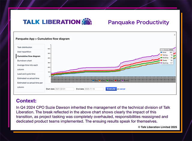 "Is your workplace spying on you? Do you have to work with your camera on, not knowing who may be looking at you or when? Does your keyboard capture your every input? At Talk Liberation, the answer to these questions is no. Yet we have just posted 308% productivity gains and our development team increased by 185% in 2025. We’re here to tell you a secret no-one else wants you to know: businesses can be extremely successful without using AI, or violating the human rights of their staff or exploiting them. We are the proof of that."